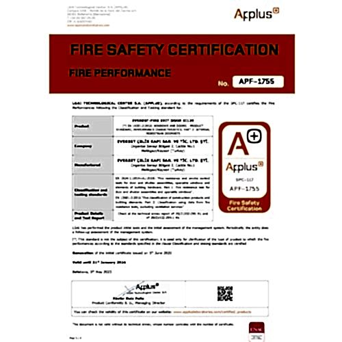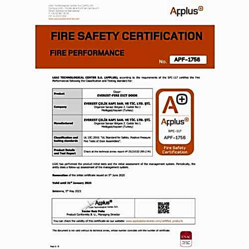 YANGIN ÇIKIŞ KAPILARI İÇİNA PPLUS SERTİFİKASI